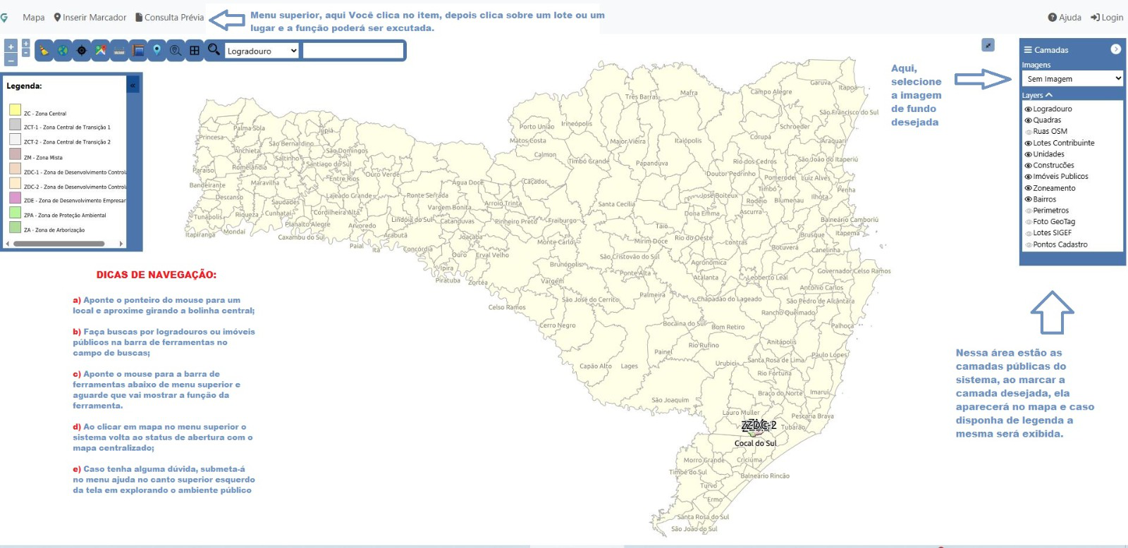Bem vindo ao Sistema de Geoprocessamento da Prefeitura de Pescaria Brava.